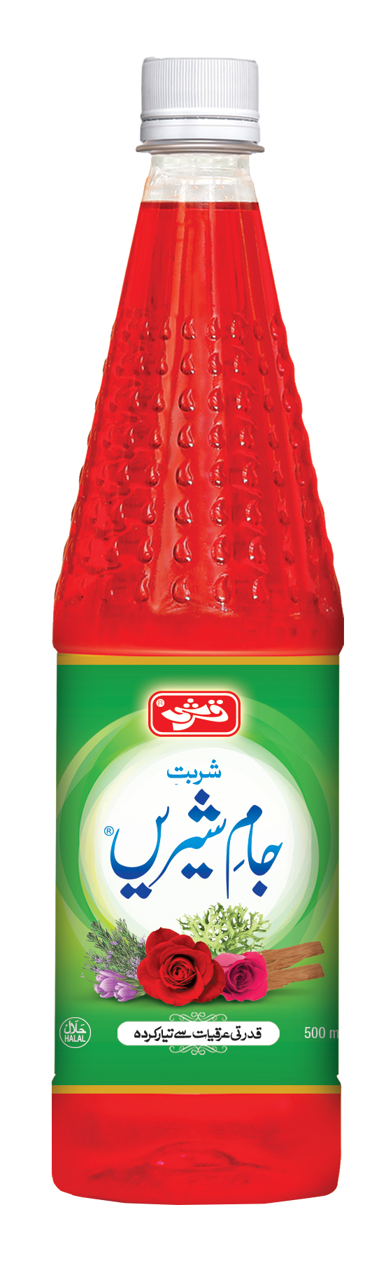 Jam-e-Shirin is a delightfully refreshing pleasant tasting and efficacious syrup made from distillates of natural herbs without using a single drop of water.